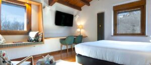 The room is decorated in white and natural tones. They are complemented by antique pieces and are equipped to create a modern, comfortable, spacious and welcoming environment. Linen and cotton curtains with the charm of a Castilian stone house.